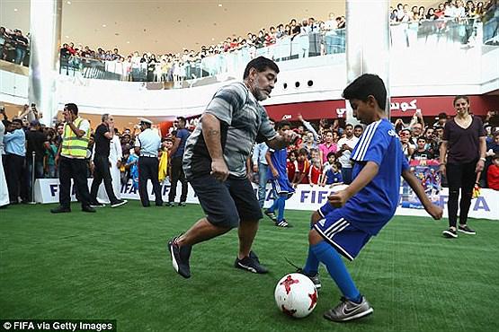 مارادونا سپس توانایی های فوتبالی اش در سن 56 سالگی را با حضور در یک زمین فوتبال کوچکی که در محل کنگره ایجاد شده بود نشان داد.