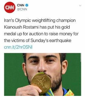 به گزارش پایگاه خبری همدان ورزش،سی ان ان از حرکت انساندوستانه کیانوش رستمی بابت به حراج گذاشتن طلای المپیکش جهت کمک به زلزلهزدگان غرب کشور منتشر کرد.